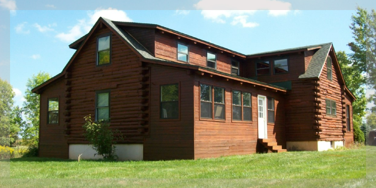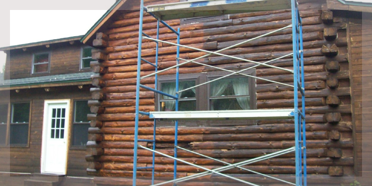 Weatherseal Cabin Brown stain was used in the re-staining of this log home by spraying with a industrial sprayer.