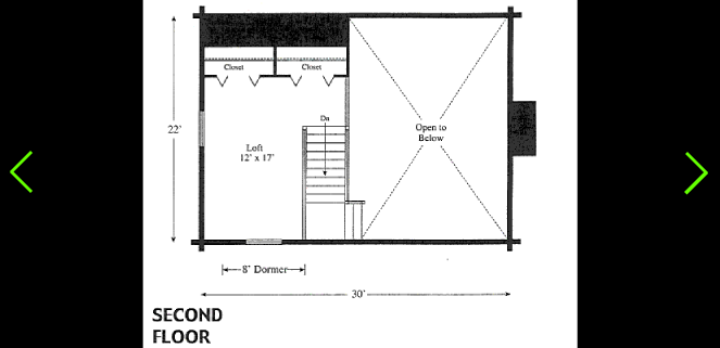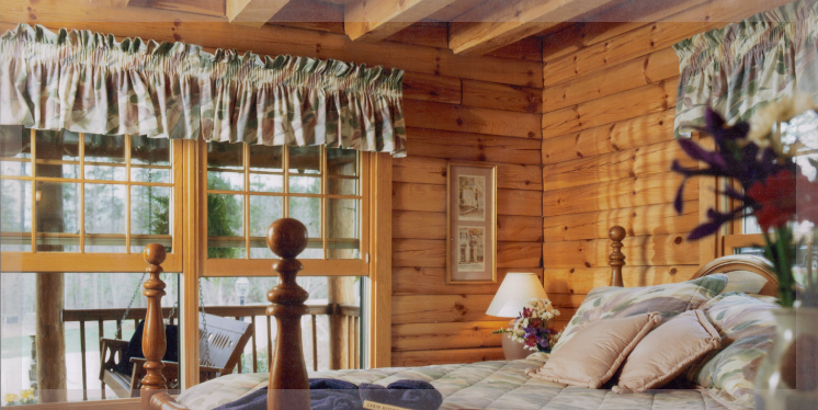 The Champlain is a Loft style cabin with full log walls and a heavy timber roof system. It has 2 bedroom and 1 bath. The porch consists of log posts, log headers and conventional deck construction.