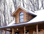 The Pierce is a loft style home with full log walls and a heavy timber roof system. It has 4 bedroom and 2 bath. The porch consists of log posts, log headers and conventional deck construction.