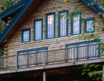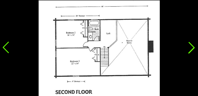 The Kennedy is a loft style home with full log walls and a heavy timber roof system. It has 3 bedroom and 2 1/2 bath. The porch consists of log posts, log headers and conventional deck construction.