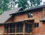 The Eisenhower is a 2 story home with full log walls and a heavy timber roof system. It has 4 bedroom and 2 1/2 bath. The porch consists of log posts, log headers and conventional deck construction.